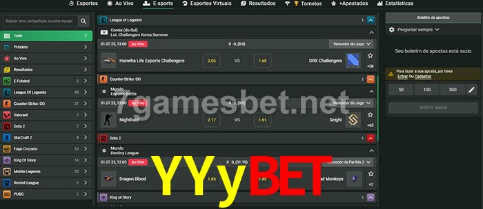 O YYybet oferece uma grande seleção de opções de apostas em e-sports com probabilidades competitivas